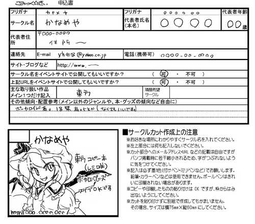 配布中の申込書はコート紙のため描きにくいと思います…コピーして使用していただければと…